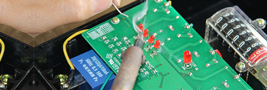 公司擁有先進的全自動、高精度SMT貼片機,貼片虛焊檢測設備,波峰焊機,全自動電能表檢驗臺,高溫老化臺,EMC測試設備,高低溫老化箱、試驗箱等。公司生產設備完善,檢測設備精良,可以滿足年產100萬只電能表的要求。